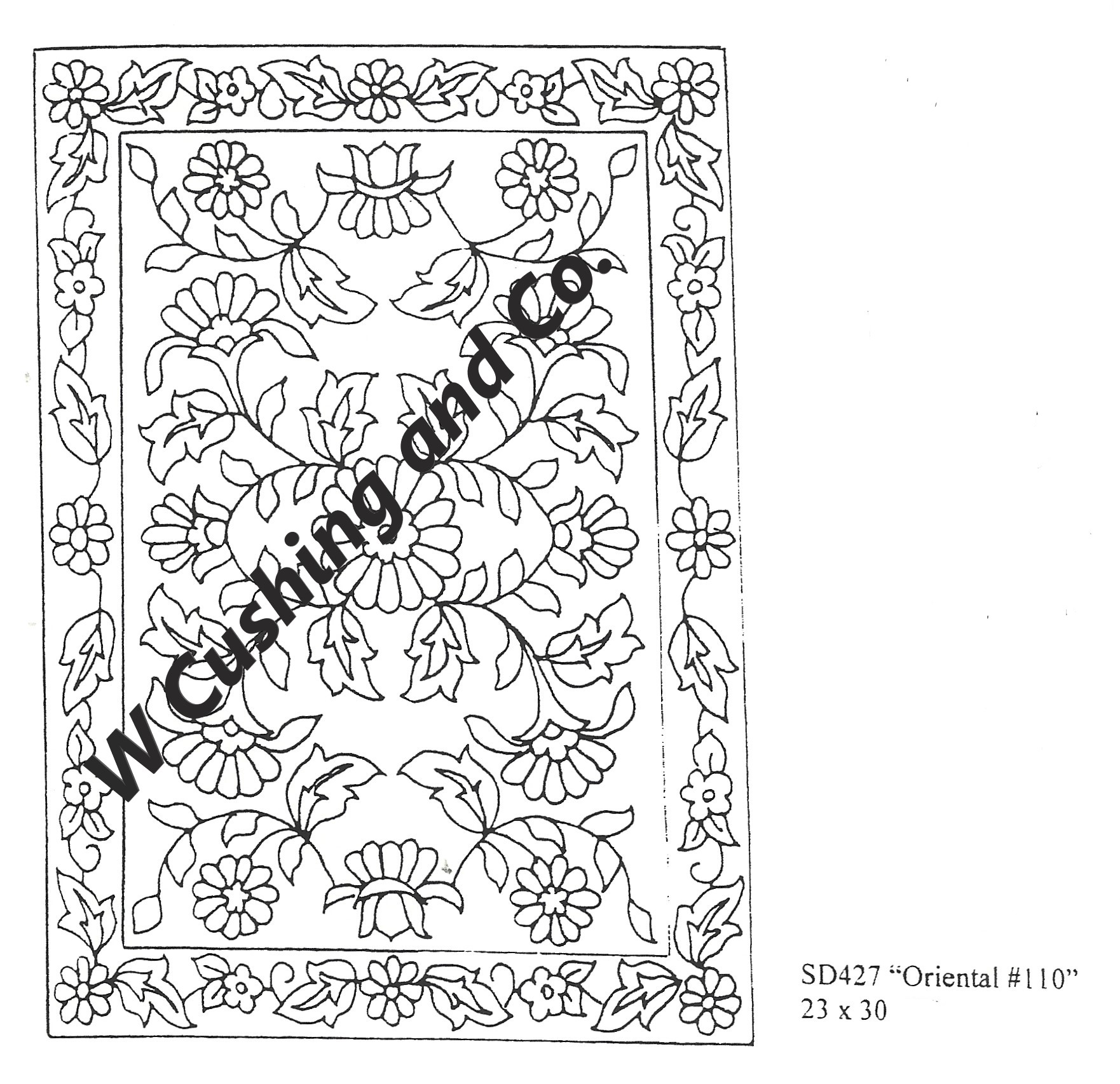 Oriental #110 Pattern by Salma Dhanji SD427 23 x 30 inches . A great oriental pattern to get creative with. Embellishments are fun to add, such as Arctic Rays or Metallic Yarn for a 3D effect. Virtually any color combination is possible. Use Grassy Knoll, or Winter Pines…Deep Woods or Vintage Paisley Red. Any of our hand dyed Imari collection or Vintage Color Series. Mix Textured wool with Dyed wool for a complete look. Please click the link to view all our in-stock textures. https://dev.wcushing.com/product-category/textured-wool/