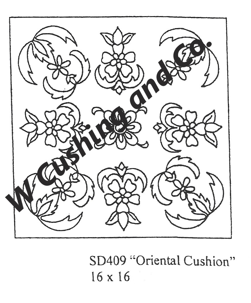 Oriental Cushion by Salma Dhanji, SD409, 16 x 16 inches . A great oriental pattern to get creative with. Makes a great pillow for any furniture piece.