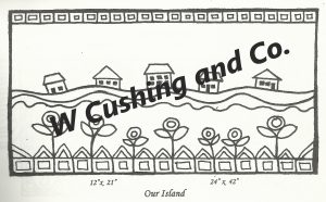 Our Island Large, pattern by Primitive Grace, 24″ x 42″. This pattern is available in another size–see separate listing. It is a beautiful primitive that embellishments are fun to add, such as Arctic Rays or Metallic Yarn for a 3D effect. Try our dip spots hand dyed wool for shading effects. We have a large variety of hand dyed wools for your rug such as Blossom, Emerald, Ocean Seas (tourmaline) and more! Mix Textured wool with Dyed wool for a complete look. Please click the link to view all our in-stock textures. https://dev.wcushing.com/product-category/textured-wool/