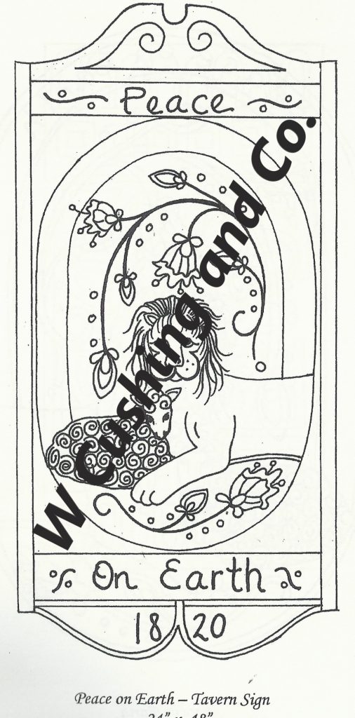 Peace On Earth Tavern sign, pattern by Primitive Grace, 24″ x 48″. This pattern is available in another size–see separate listing