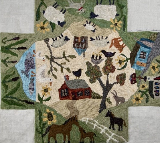 W. Cushing is proud to have Nola Hooks and Cactus Needle patterns! Peaceful Village Footstool/Rug, Pattern by Cactus Needle, 26 1/2” X 29 1/2”. Fun to use velvet, metallics, burly spun yarns and your stash! Suggested wools are Jacob’s Spring Green and Crimson, Gull, Black Walnut, and more from our dyed wools! Mix Textured wool with Dyed wool for a complete look. Please click the link to view all our in-stock textures. https://dev.wcushing.com/product-category/textured-wool/