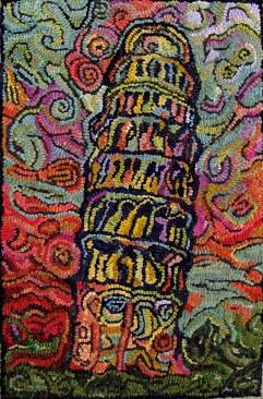 Pisa, 16″ x 24″ Off the Hook Wool Rugs Pattern designed by Sharon A. Smith, now part of the W. Cushing Treasury of Patterns Suitable for cuts #4 to #8 Embellishments are fun to add, such as Arctic Rays or Metallic Yarn for a 3D effect.