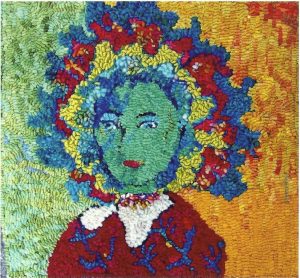 Portrait,  15″ x 17″.  Off the Hook Wool Rugs Pattern designed by Sharon A. Smith, now part of the W. Cushing Treasury of Patterns