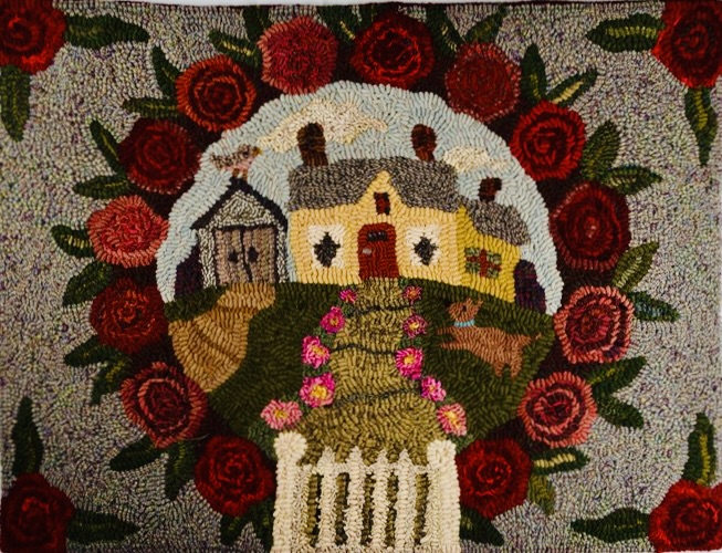 W. Cushing is proud to have Nola Hooks and Cactus Needle patterns! Posey Cottage, Pattern by Cactus Needle, 31” X 23”. *Embellishments are fun to add, such as Arctic Rays or Metallic Yarn for a 3D effect. Try our dip spots hand dyed wool for shading effects. We have a large variety of hand dyed wools for your rug such as Misty, Jacob’s Gold, Better Than Roses and more! Mix Textured wool with Dyed wool for a complete look. Please click the link to view all our in-stock textures. https://dev.wcushing.com/product-category/textured-wool/