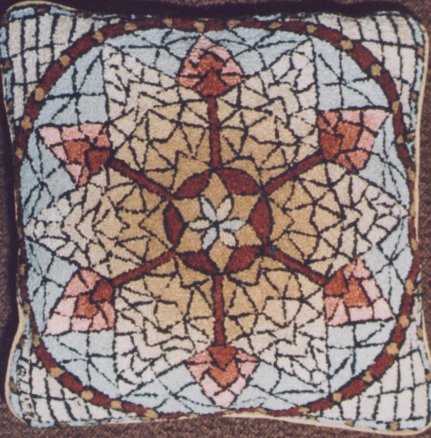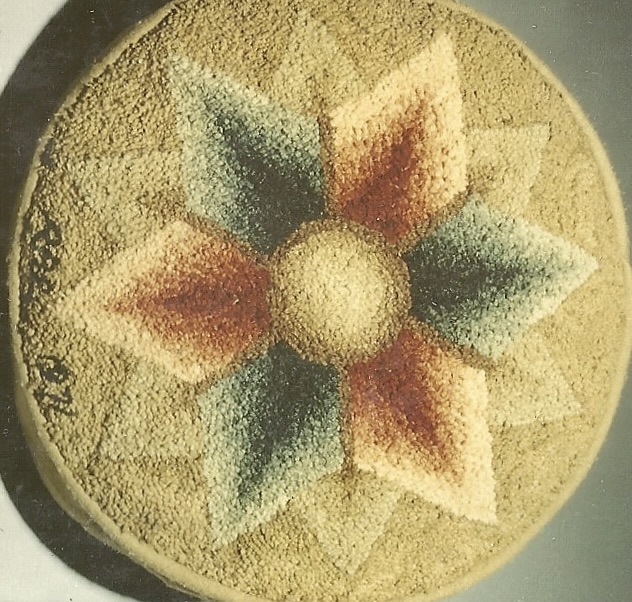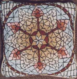 Photos are from the archives of Joan Moshimer, no names are available…but one was altered to a stunning pillow with a wonderful broken glass style, altered by artist it was hooked by. Great for a chair seat or pillow. Fun to use velvet, metallics, burly spun yarns and your stash! A great way to be colorful and bold. From our dyed wool collection, try Frosty, Imari Rose-Taupe, Imari Red and Jade! Mix Textured wool with Dyed wool for a complete look. Please click the link to view all our in-stock textures. https://dev.wcushing.com/product-category/textured-wool/