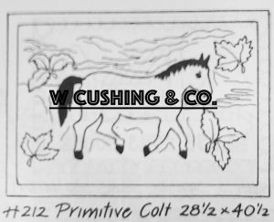 Primitive Colt, pattern by Ruth Hall, 28.5″ x 40.5″, H212. A wonderful primitive rug. Embellishments are fun to add, such as Fur, Boucle, Arctic Rays or Metallic Yarn for a 3D effect.