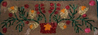 20″ x 10″ Primitive Floral pattern by P is for Primitive. This pattern is on linen with edges serged. Embellishments are fun to add, such as Arctic Rays or Metallic Yarn for a 3D effect.