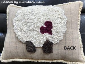18″ x 18″ Primitive Sheep Pillow pattern by P is for Primitive. The pillow is front and back printed in ONE pattern and can be hooked or punched using the Oxford Punch.