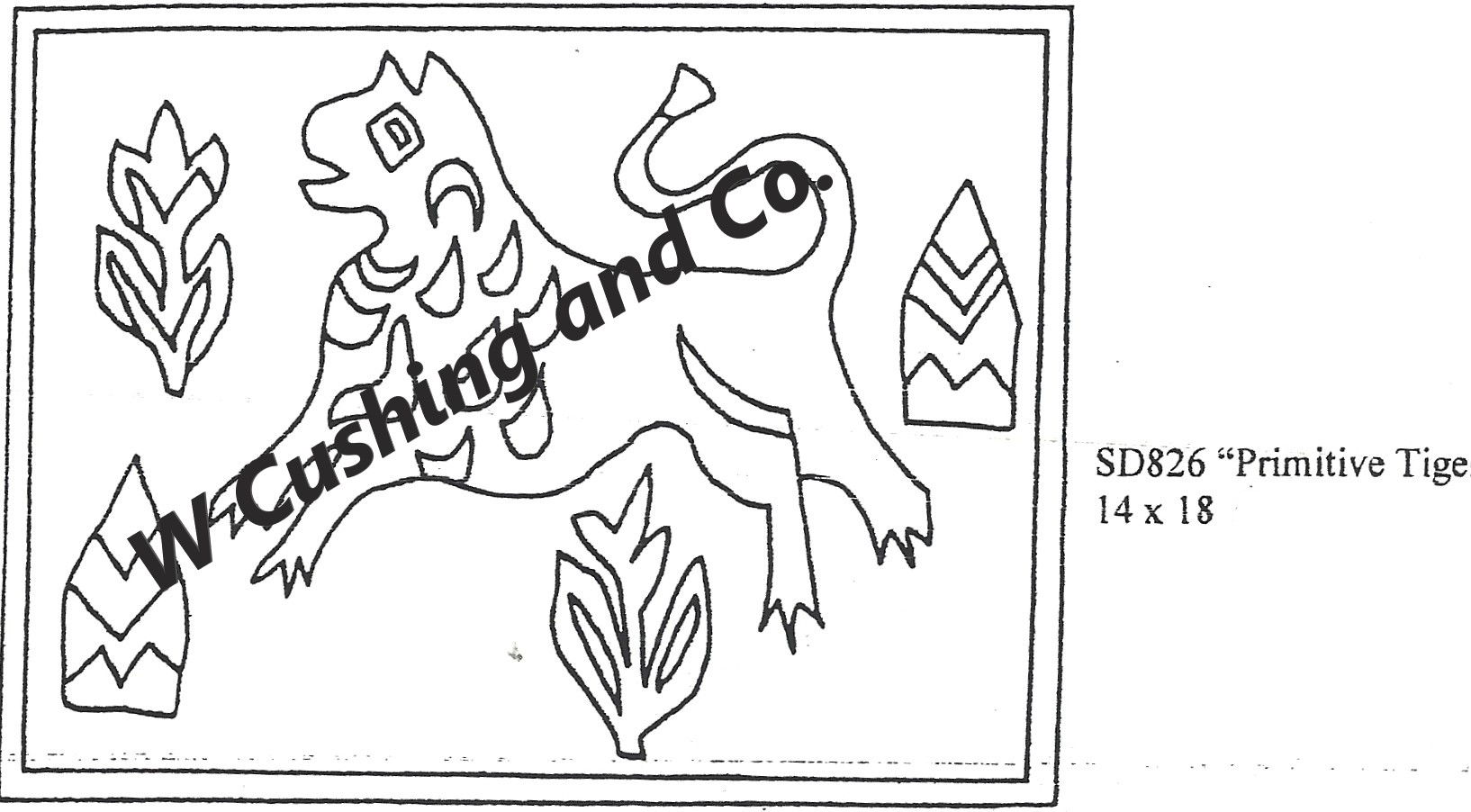Primitive Tiger by Salma Dhanji, SD826, 14 x 18 inches. A great pattern to get creative with. Makes a great pillow for any furniture piece. Try fur, velvets or boucle yarn as mixed media in your rug. From our dyed wools, try Dusty Daylily, Imari Gold, Green Oh Green, Granite and more! Mix Textured wool with Dyed wool for a complete look. Please click the link to view all our in-stock textures. https://dev.wcushing.com/product-category/textured-wool/