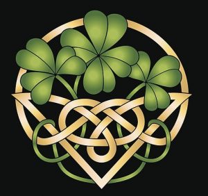 The BASKET OF LUCK Punch Needle Pattern ONLY. Ornamental Celtic knot design with 3 and 4 leaf clovers. Vector illustration.