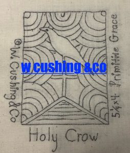The HOLY CROW pattern is 5 1/4″ x 4″ and printed on Weaver’s Cloth to use your  punch needle with.