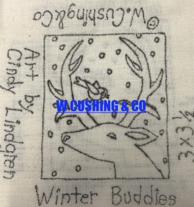 The WINTER BUDDIES pattern is 3″ x 3.5″ and printed on Weaver’s Cloth to use your punch needle with.