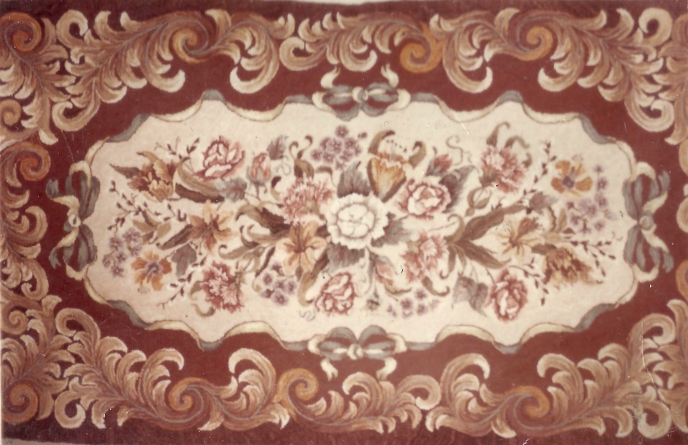 Queen’s Desire by Pearl McGown OSV 507 46″ x 80″ is a fabulous rug pattern. It is a beautiful floral that embellishments are fun to add, such as Arctic Rays or Metallic Yarn for a 3D effect. Try our dip spots hand dyed wool for shading effects. We have a large variety of hand dyed wools for your rug such as Blossom, Jacob’s Peach Brown, Wild Grape and Gold and more! Mix Textured wool with Dyed wool for a complete look.