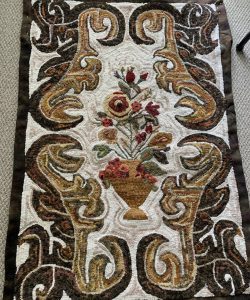 Autumn by Ralph Burnham, 32″ x 48″– a classic scroll and crewel floral look! *Embellishments such as Velvets, Arctic Rays, Fur, Roving, Burly Spun or Metallic Yarn for a 3D effect to add to your pattern! Perfect way to be creative! Try Jacob’s Brown, Vintage Paisley Red, Cream of Wheat, Imari Rose-Taupe or Jade and more from our dyed wools! Mix Textured wool with Dyed wool for a complete look. Please click the link to view all our in-stock textures. https://dev.wcushing.com/product-category/textured-wool/