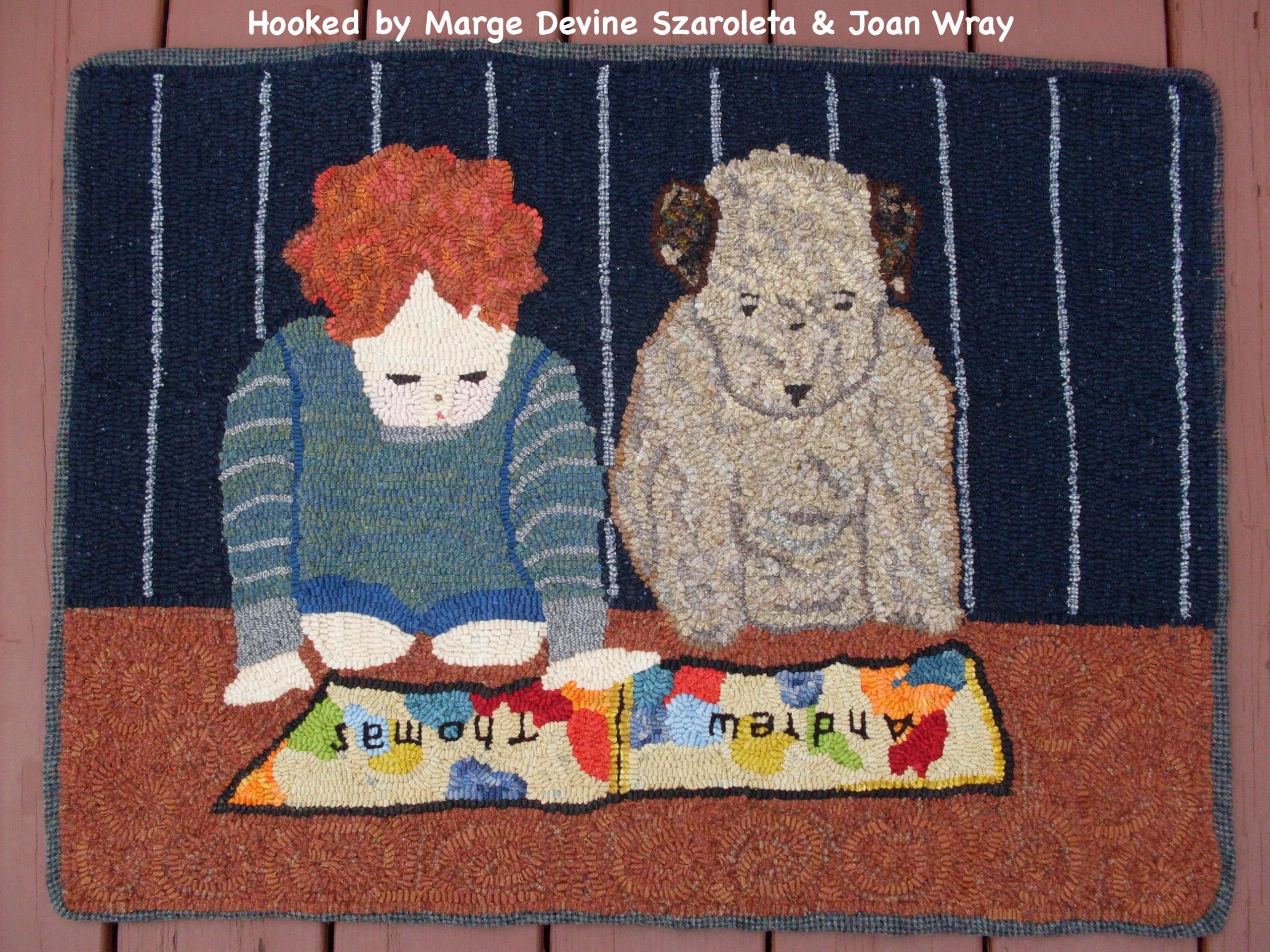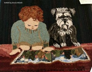 Example by Jennie Adcock and displayed at Caraway Rug School 2022 and a joint collaboration by Marge Devine Szaroleta and finished by Joan Wray
