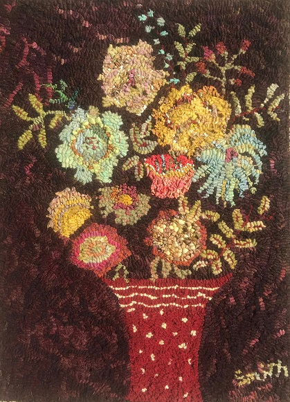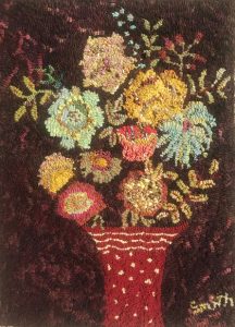 Red Vase, 18″ x 24″ Off the Hook Wool Rugs Pattern designed by Sharon A. Smith, now part of the W. Cushing Treasury of Patterns