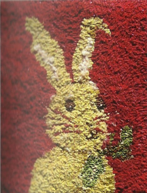 Red Whiskers, 15″ x 17″. Off the Hook Wool Rugs Pattern designed by Sharon A. Smith, now part of the W. Cushing Treasury of Patterns. Makes a great pillow!