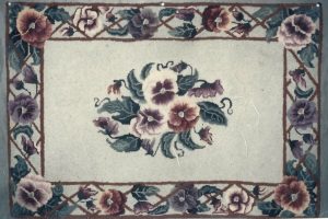 This wonderful floral rug is Remembrance by Pearl McGown OSV 510 24″ x 35″.  It is a beautiful floral that embellishments are fun to add, such as Arctic Rays or Metallic Yarn for a 3D effect.  Try our dip spots hand dyed wool for shading effects.  We have a large variety of hand dyed wools for your rug such as Perky Pansy, Amethyst, Jacob’s Wine, Imari Jade and more!  Mix Textured wool with Dyed wool for a complete look.  Please click the link to view all our in-stock textures.  https://dev.wcushing.com/product-category/textured-wool/
