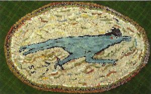 Roadrunner, 13″ x 18″. Off the Hook Wool Rugs Pattern designed by Sharon A. Smith, now part of the W. Cushing Treasury of Patterns