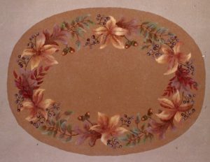 Roadside OSV 785 by Pearl McGown 27″ x 36″ is this beautiful rounded pattern. It is a beautiful floral that embellishments are fun to add, such as Arctic Rays or Metallic Yarn for a 3D effect. Try our dip spots hand dyed wool for shading effects. We have a large variety of hand dyed wools for your rug such as Better Than Roses, Jacob’s Peach, Zinnia Garden and more!