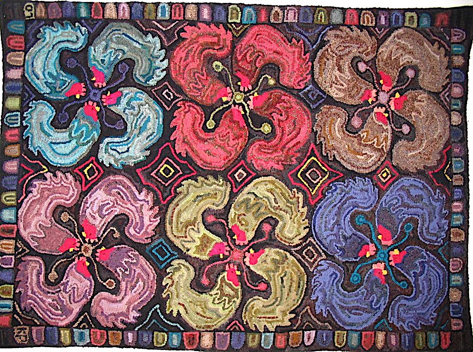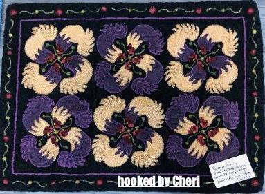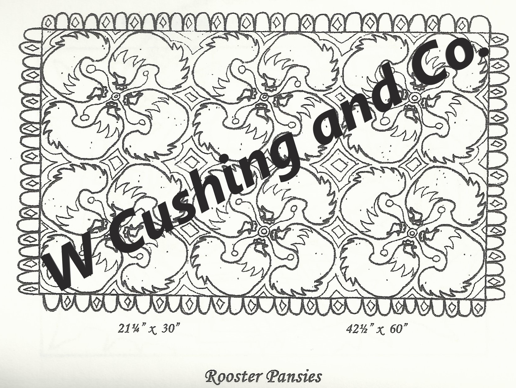 Rooster Pansies Large, pattern by Primitive Grace, 42 1/2″ x 60″ This pattern is available in 2 other sizes–see separate listings. Any color scheme will compliment. A good pattern to get creative with.