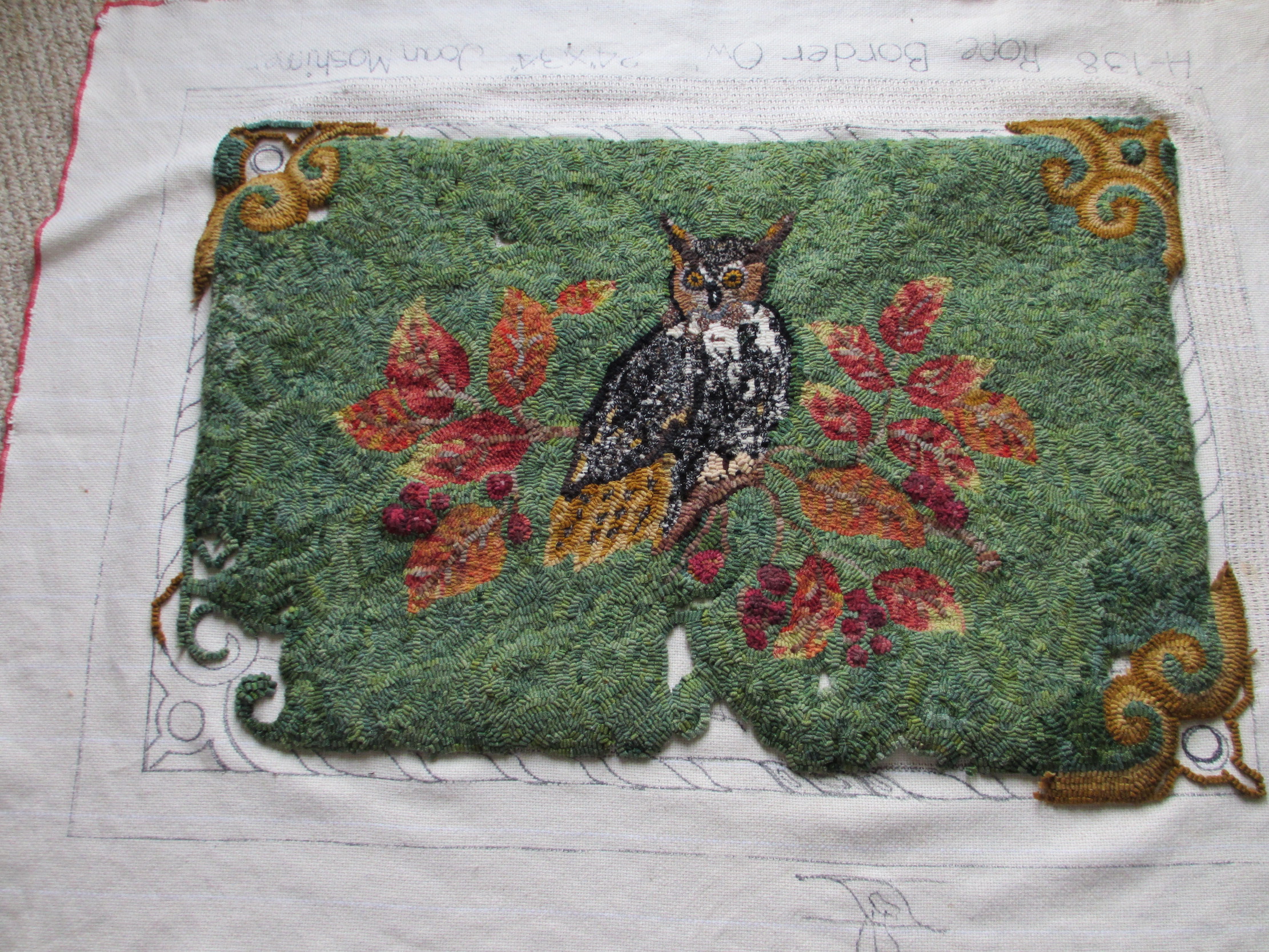 *Our lovely example hooked by Sylvia Doiron, a work in progress.