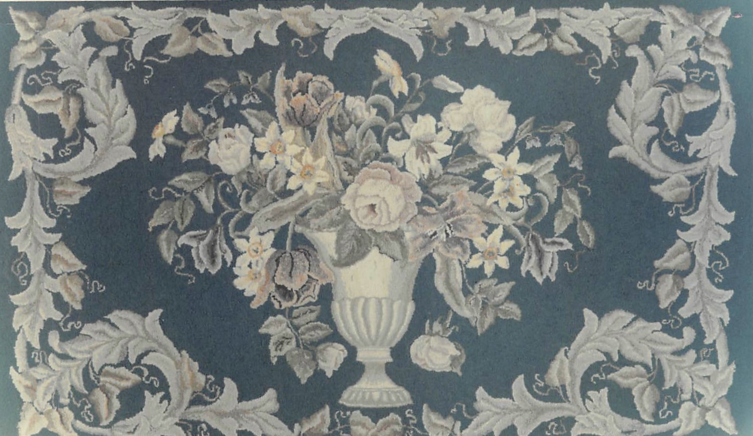 This wonderful rug, Royalty by Pearl McGown OSV 670 35″ x 57″. It is a beautiful floral that embellishments are fun to add, such as Arctic Rays or Metallic Yarn for a 3D effect. Try our dip spots hand dyed wool for shading effects. We have a large variety of hand dyed wools for your rug such as Jacob’s Green, Gull, Emerald, Misty, Imari Jade and more! Mix Textured wool with Dyed wool for a complete look.