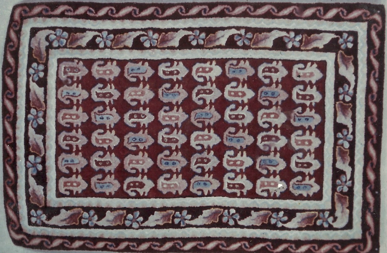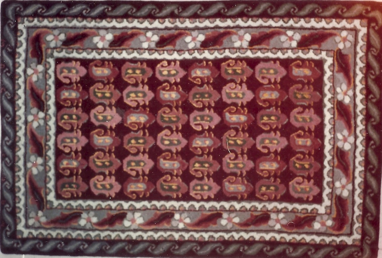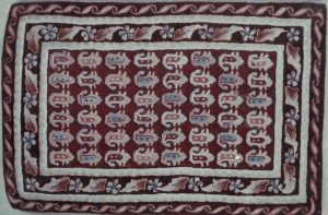 **we do not kit our patterns. Please Note–the photos of these rugs are from the notebooks and archives of Joan Moshimer. There are no names of who hooked the rug.