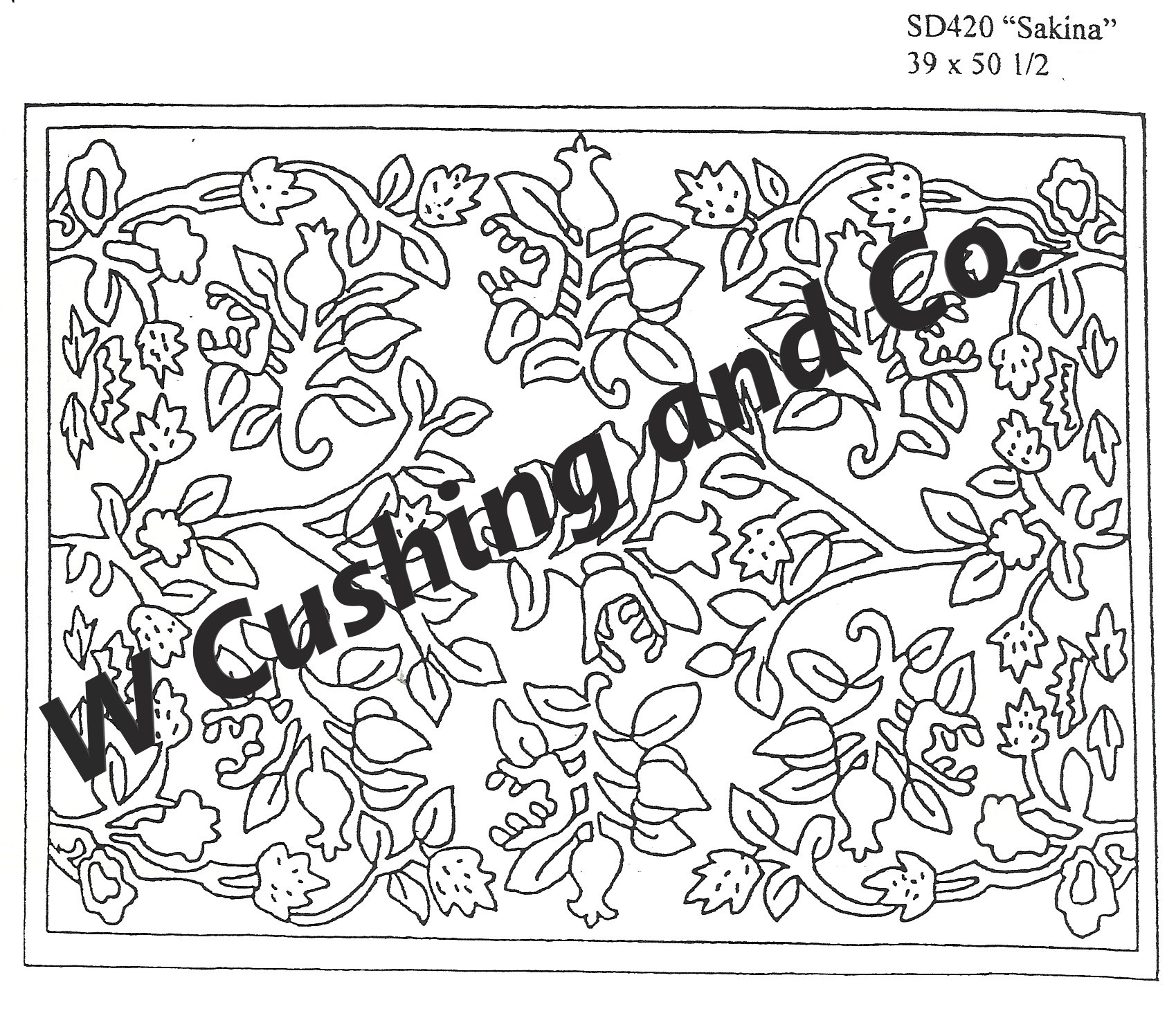 Sakina, 39 1/2 x 50 SD420. Wonderful oriental pattern, great to use your stash or be great to Oxford Punch Hook! From our dyed wools we have Blue topaz, Gardens for Storybook, Emerald or Amethyst and more! Embellishments are fun to add, such as Arctic Rays or Metallic Yarn for a 3D effect. Mix Textured wool with Dyed wool for a complete look. Please click the link to view all our in-stock textures. https://dev.wcushing.com/product-category/textured-wool/