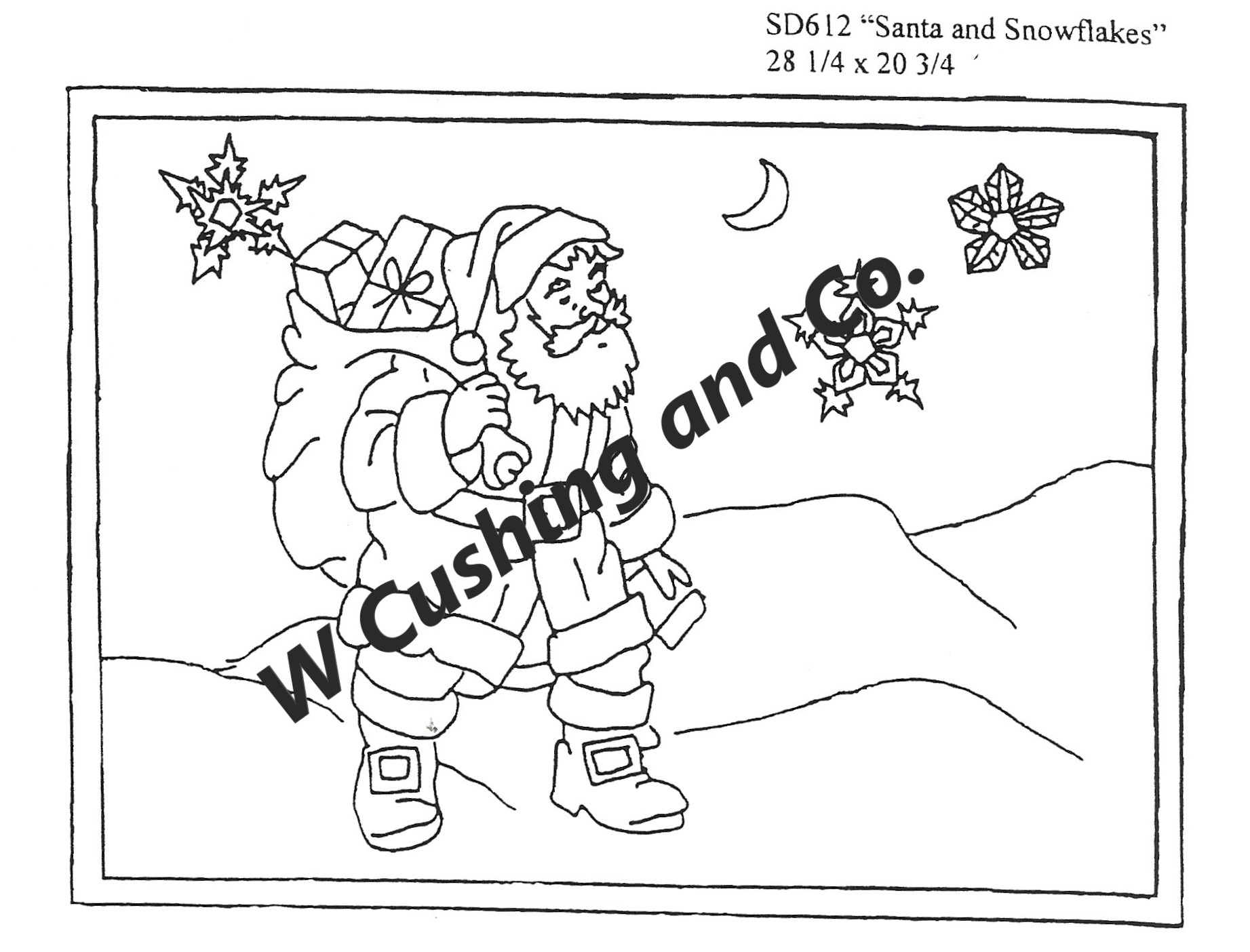 Santa and Snowflakes Pattern by Salma Dhanji SD612 28.25 x 20.75 inches. A great primitive pattern to get creative with. Try fur, velvets or boucle yarn as mixed media in your rug. We have some great dyed wools to complete your masterpiece. A very nice nighttime scene. Add Arctic Rays to your snowflakes for a glisten! Check out Christmas Red, Winter Grays, Hunters Moon, Twinkle and Snow from our dyed wools. Mix Textured wool with Dyed wool for a complete look. Please click the link to view all our in-stock textures. https://dev.wcushing.com/product-category/textured-wool/