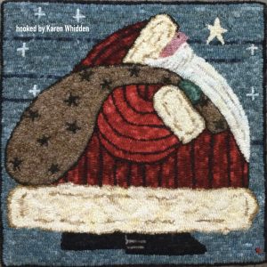 16 x 16 Santa Under the Stars. Some beautiful dyed wools to try are Christmas Red, Vintage Paisley Red, Gull, Our Fur, and Jacobs Teal Blue Mix Textured wool with Dyed wool for a complete look.