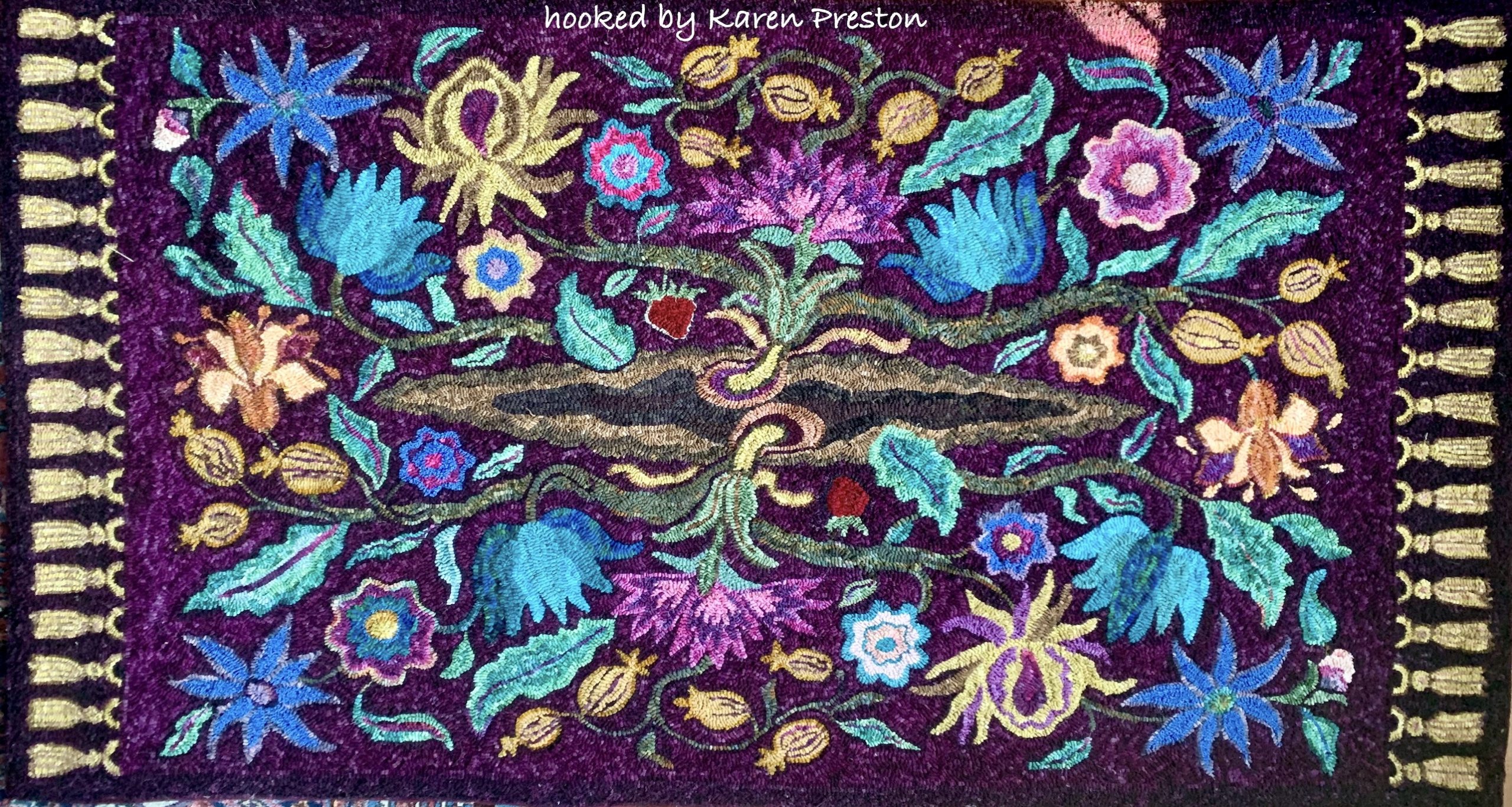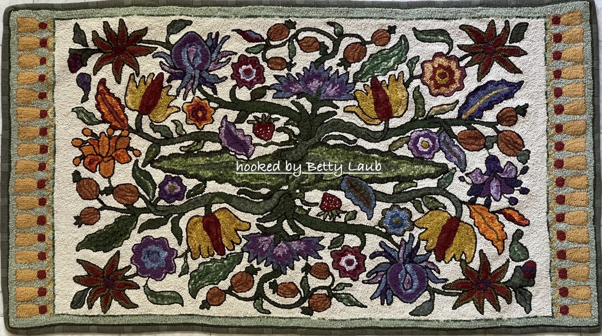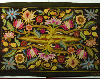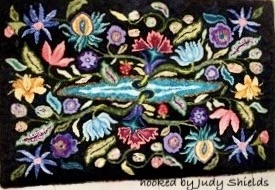 A STUNNING Pattern, Shalimar Garden M380 is a great combination of crewel and primitive from Joan Moshimer’s Studio. 45″ x 82″ Embellishments are fun to add, such as Arctic Rays or Metallic Yarn for a 3D effect.