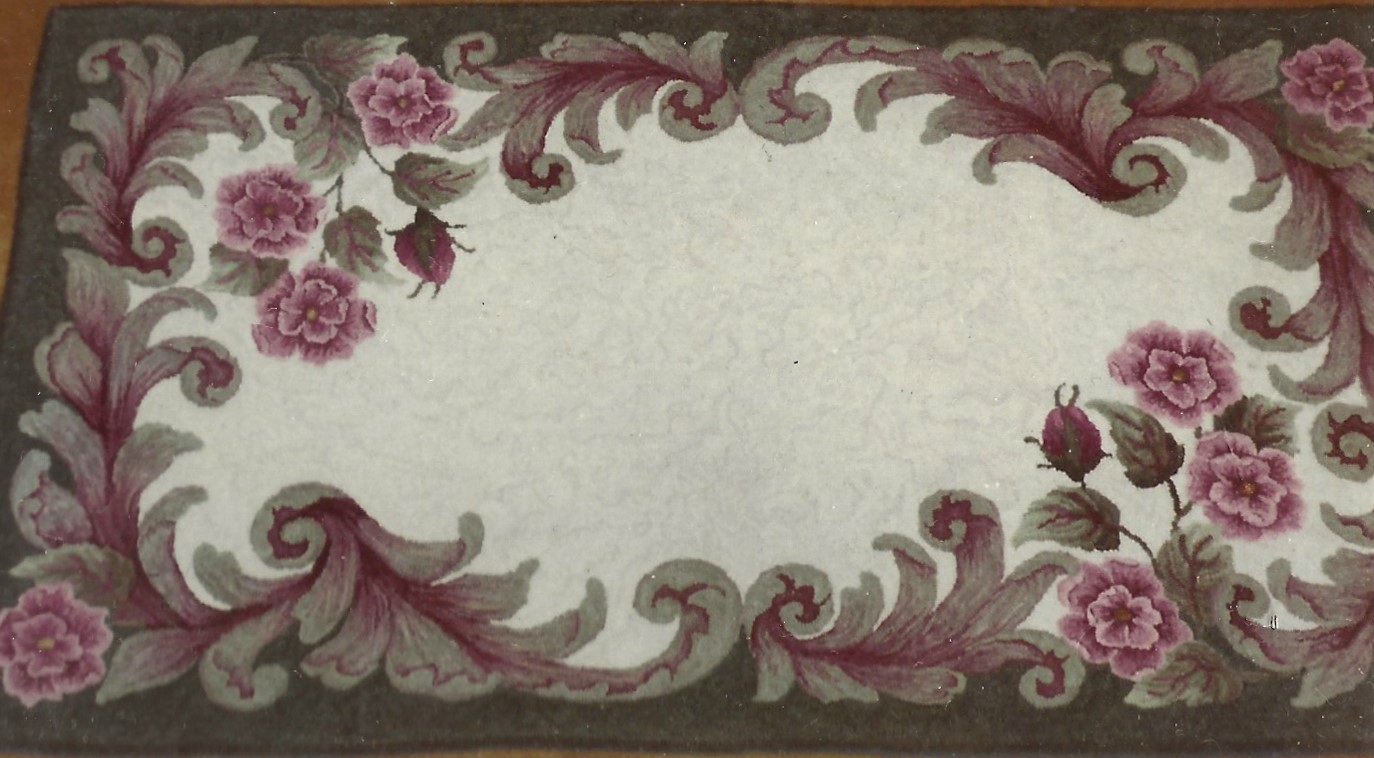 This beautiful floral pattern is called Sheer Joy by Pearl McGown OSV 771 30″ x 53″.  It is a beautiful floral that embellishments are fun to add, such as Arctic Rays or Metallic Yarn for a 3D effect.  Try our dip spots hand dyed wool for shading effects.  We have a large variety of hand dyed wools for your rug such as Raspberry Burst, Jacob’s Wine, Imari Jade and more!  Mix Textured wool with Dyed wool for a complete look.  Please click the link to view all our in-stock textures.  https://dev.wcushing.com/product-category/textured-wool/