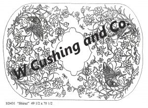 Shiraz Pattern by Salma Dhanji 49.5 x 70.5 inches SD431.  A wonderful oriental pattern.  A great rug to use all your favorite colors.  *Embellishments such as Arctic Rays, Fur, Roving, Burly Spun or Metallic Yarn for a 3D effect to add to your pattern!  Perfect way to be creative!  Suggested wools are Hummingbird, Frosty, Misty, Glistening Mountains Majesty, Periwinkle Pop and more!  Mix Textured wool with Dyed wool for a complete look.  Please click the link to view all our in-stock textures.  https://dev.wcushing.com/product-category/textured-wool/