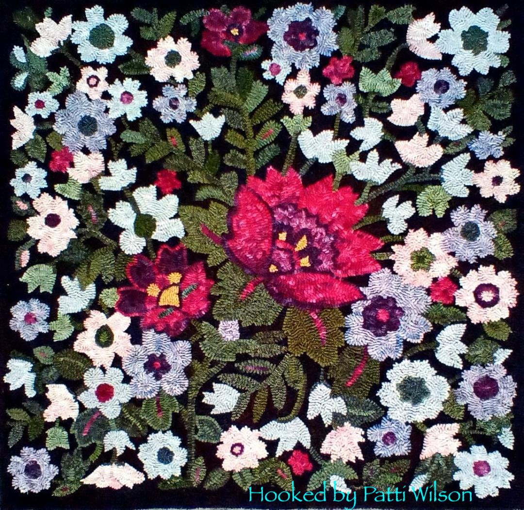 Sibyl Square by Salma Dhanji approx. 34.5 x 34.5 Square SD224 Great piece to hook in your favorite colors. . .or try our jewel tones! Embellishments are fun to add, such as Arctic Rays or Metallic Yarn for a 3D effect. Try Sapphire, Blue Topaz, Garnet, Yellow Topaz and more from our dyed wools. Mix Textured wool with Dyed wool for a complete look. Please click the link to view all our in-stock textures. https://dev.wcushing.com/product-category/textured-wool/