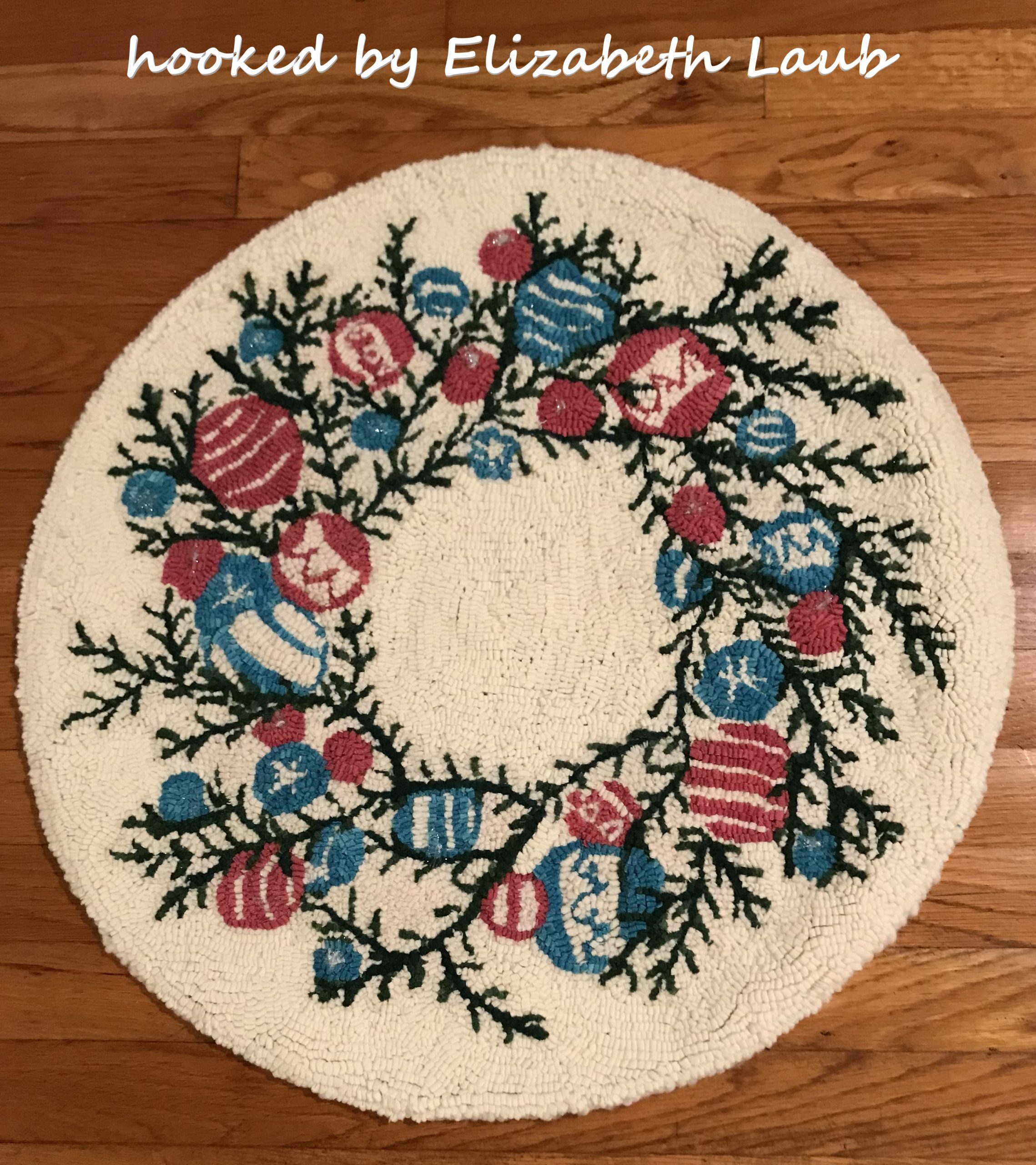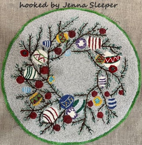 Pattern is 35″ round. We offer hand dyed wools such as Fireworks, Christmas Red, Imari jade, Imari Gold and more. Try some of our yarns to bind with. We have mixed media, furs and sequin threads to add! Mix Textured wool with Dyed wool for a complete look. Please click the link to view all our in-stock textures. https://dev.wcushing.com/product-category/textured-wool/