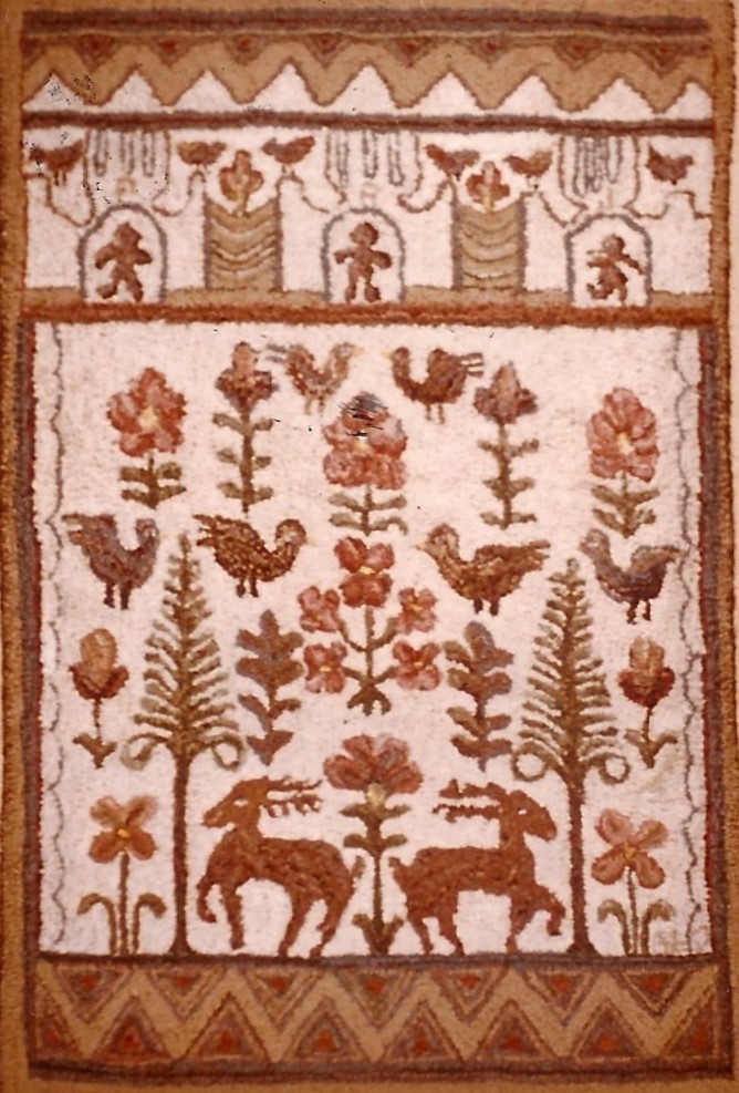 Please Note–the photos of these rugs are from the notebooks and archives of Joan Moshimer. There are no names of who hooked the rug.