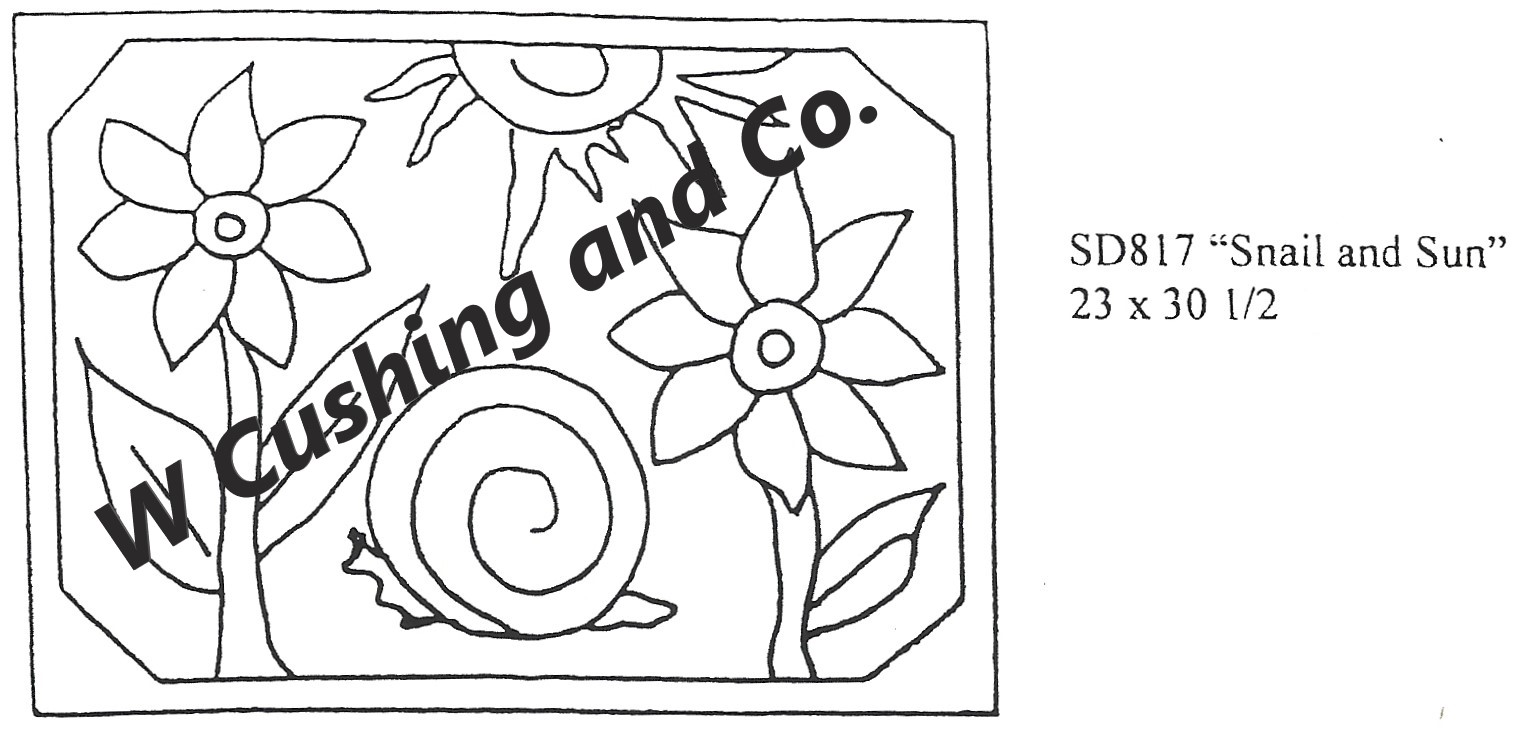 Snail and Sun Pattern by Salma Dhanji SD817 23 x 30.5 inches. A great pattern to get creative with. A perfect tile for beginners. Great wools to use. . Bluebells or Better Than Roses from our dyed wools. Truly a versatile tile. Try embellishments such as Arctic Rays Wispy Fringe, Roving or Burly Spun Yarn in your pattern. See our colors available in “tools of the trade” section on our site. We have many options. Mix Textured wool with Dyed wool for a complete look. Please click the link to view all our in-stock textures. https://dev.wcushing.com/product-category/textured-wool/