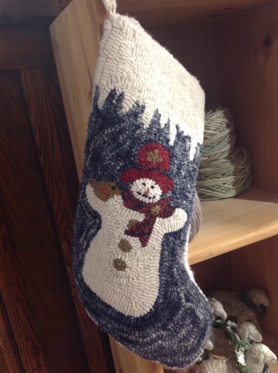 Snow Bird Stocking from Joan Moshimer’s Studio on our finest linen, just the pattern. 10.5 x 15 MP 2007. Great Dyed Wools to use. . ..Mother of Pearl, Christmas Red, Imari Jade, or Christmas Green. Try embellishments such as Arctic Rays Wispy Fringe, Fur or Burly Spun Yarn in your pattern. We have many options. Mix Textured wool with Dyed wool for a complete look. Please click the link to view all our in-stock textures. https://dev.wcushing.com/product-category/textured-wool/