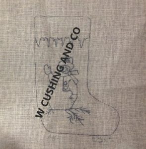 Snowman Greetings Stocking from Joan Moshimer’s Studio on our finest linen, just the pattern. 10.5 x 15 MP 2007. Great Dyed Wools to use. . ..Mother of Pearl, Christmas Red, Imari Jade, or Christmas Green. Try embellishments such as Arctic Rays Wispy Fringe, Fur or Burly Spun Yarn in your pattern. We have many options. Mix Textured wool with Dyed wool for a complete look. Please click the link to view all our in-stock textures. https://dev.wcushing.com/product-category/textured-wool/