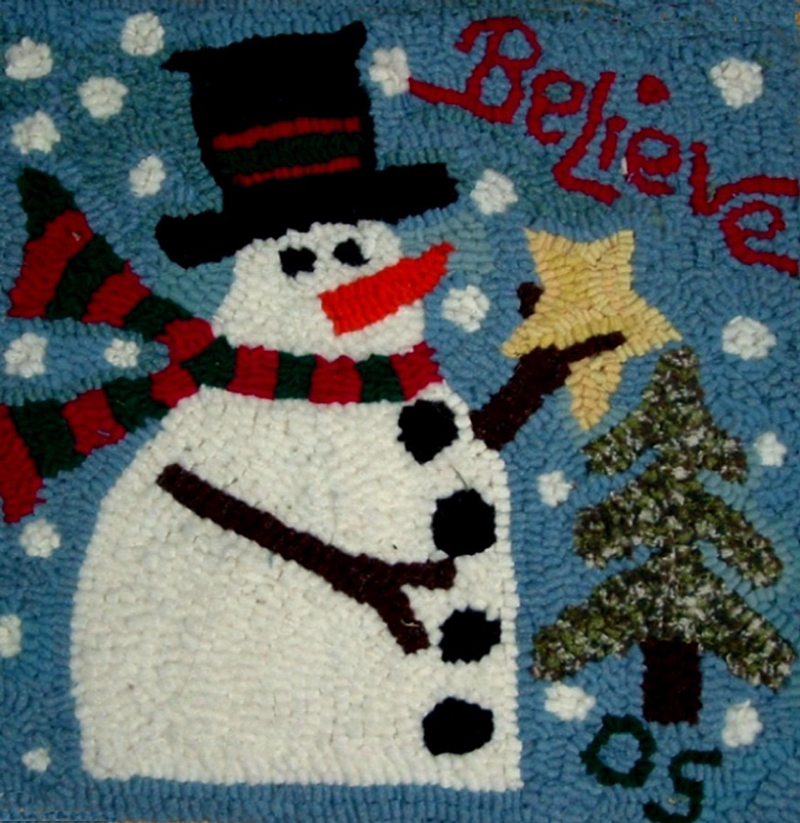 13″ x 13″ Snowman Pillow punch pattern by P is for Primitive. This pattern is on your choice of backing. Embellishments are fun to add, such as Arctic Rays, Fur or Metallic Yarn for a 3D effect to add to your snowman!