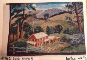 **we do not kit our patterns. Please Note–the photos of these rugs are from the notebooks and archives of Joan Moshimer. There are no names of who hooked the rug.