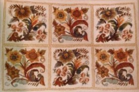 **we do not kit our patterns. Please Note–the photos of these rugs are from the notebooks and archives of Joan Moshimer. There are no names of who hooked the rug.