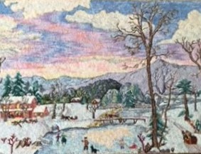 This wonderful pictorial by Pearl McGown that can be customized to your town! OSV 838 Stop at the Inn, 26″ x 40″ A good way to incorporate all your favorite colors. Fun to use velvet, metallics, burly spun yarns and your stash! Suggested wools are Blossom, Soft as Petals, Green Oh Green, Imari Gold and Jade, Jacob’s Brown and more from our dyed wools! Mix Textured wool with Dyed wool for a complete look. Please click the link to view all our in-stock textures. https://dev.wcushing.com/product-category/textured-wool/