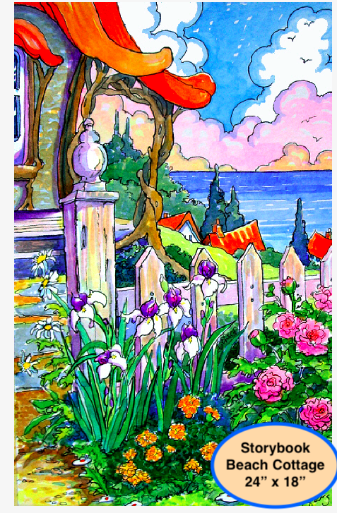 Storybook Beach Cottage based on the artwork of Alida Akers, 24″ x 18″