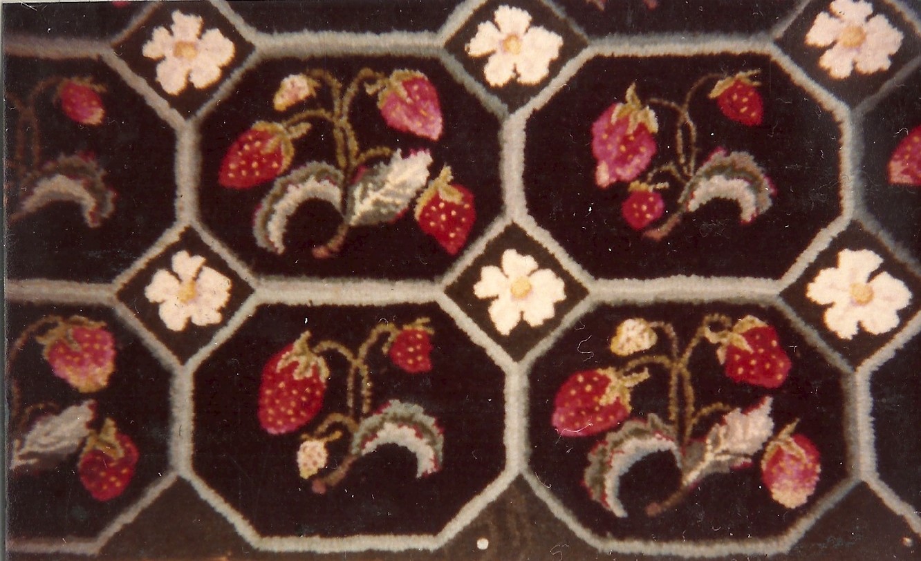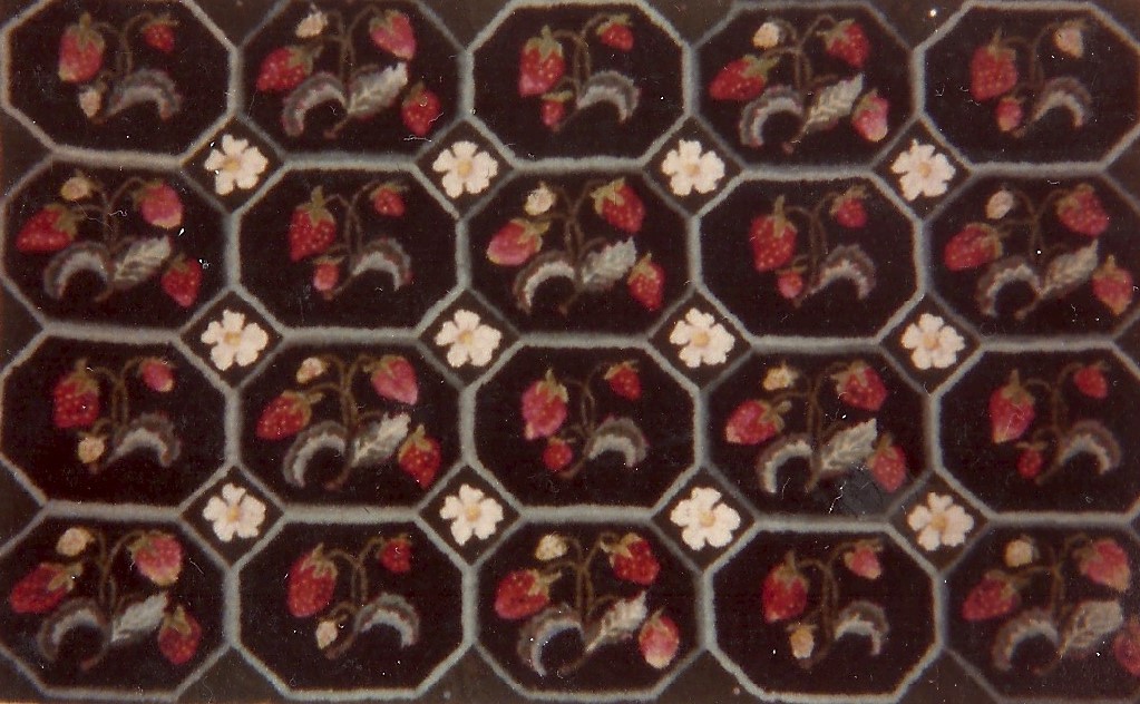 Strawberry Patch by Pearl McGown OSV 533 27″ x 44″  is a fabulous rug pattern, great to use our dip spots for the berries