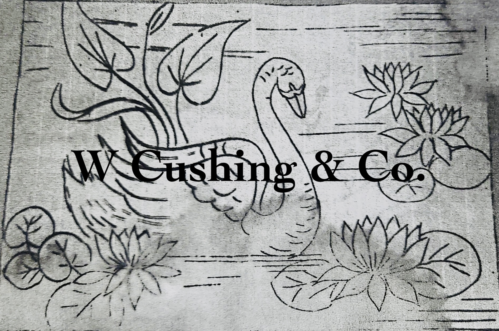 Swan Rug, 26 1/2 x 35 1/2, #RA 702 from our Rebecca Andrews animal collection. A beautiful swan pattern! Try fur, velvets or boucle yarn as mixed media in your rug.