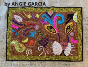 Tangled Cat, by P Is For Primitive 15″ x 21″. *Embellishments such as Velvets, Arctic Rays, Fur, Roving, Burly Spun or Metallic Yarn for a 3D effect to add to your pattern! Perfect way to be creative! Any color scheme looks great or just use up your stash. Check out our Imari Dyed Wools, or new Jacob’s line of dyed wools. Mix Textured wool with Dyed wool for a complete look. Please view all our in-stock textures. Sizes are approximate. If you require color planning services, we are happy to help you select wool for this pattern. Please give us a call at 207-360-0792. *we do not kit our patterns.