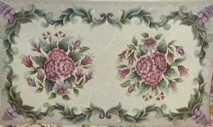 This wonderful rug is Tattle Corner Twins, by Pearl McGown OSV434 41 3/4″ x 72″.  It is a beautiful floral that embellishments are fun to add, such as Arctic Rays or Metallic Yarn for a 3D effect.  Try our dip spots hand dyed wool for shading effects.  We have a large variety of hand dyed wools for your rug such as Raspberry Burst, Jacob’s Wine, Grassy Knoll, Imari Jade and more!  Mix Textured wool with Dyed wool for a complete look.  Please click the link to view all our in-stock textures.  https://dev.wcushing.com/product-category/textured-wool/