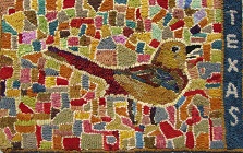 Texas Mockingbird, 13″ x 21″. Makes a great pillow! Off the Hook Wool Rugs Pattern designed by Sharon A. Smith, now part of the W. Cushing Treasury of Patterns